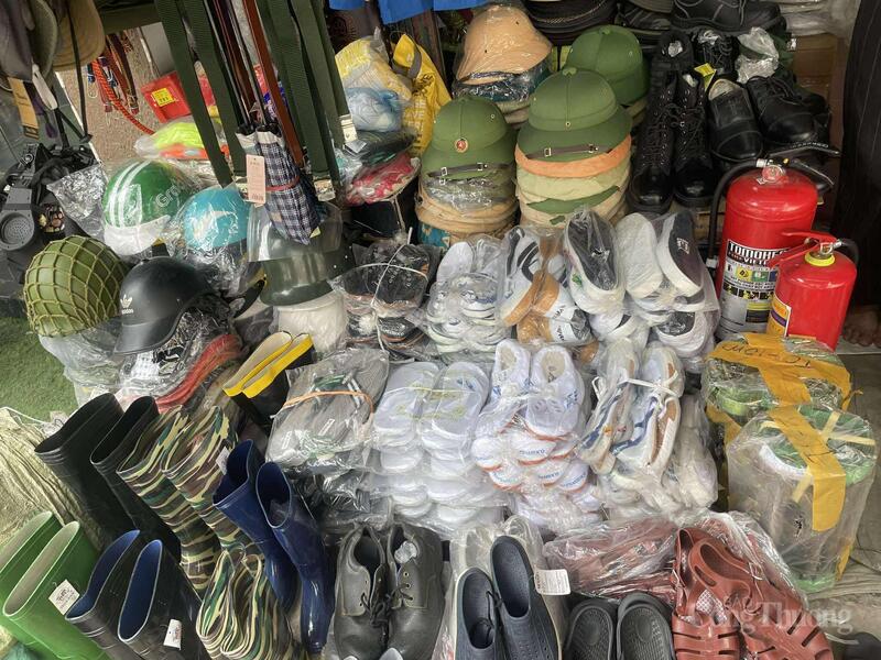 Cửa hàng tại phố Lê Duẩn chuyên đồ bảo hộ lao động, chữa cháy cũng hết hàng.