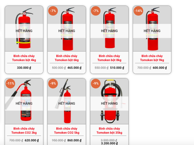Website của đơn vị chuyên bình chữa cháy nhưng nhiều sản phẩm cũng hết hàng. Ảnh chụp màn hình