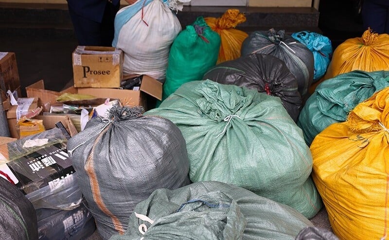 Hàng hóa vi phạm bị tiêu hủy theo đúng quy định. Ảnh: Bách Hợp