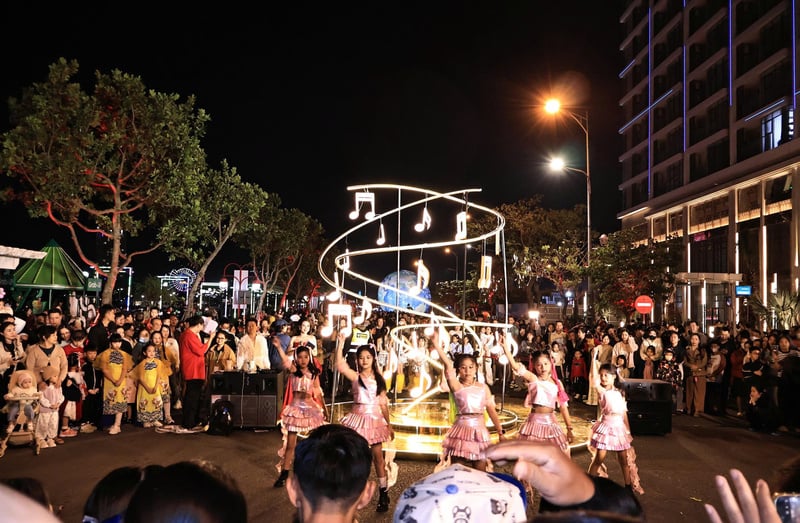 Các chương trình âm nhạc được tổ chức xuyên suốt thời gian lễ hội, tạo điểm nhấn cho không khí sôi động tại phố đi bộ. Ảnh: Diễm Phúc