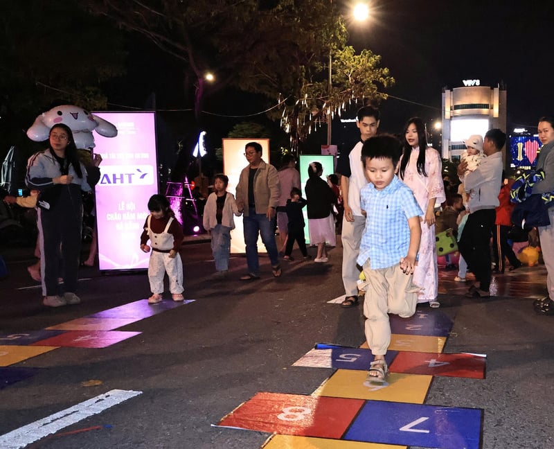 Người dân, đặc biệt là trẻ em, hào hứng tham gia các trò chơi được tổ chức tại tuyến phố đi bộ Bạch Đằng. Ảnh: Diễm Phúc