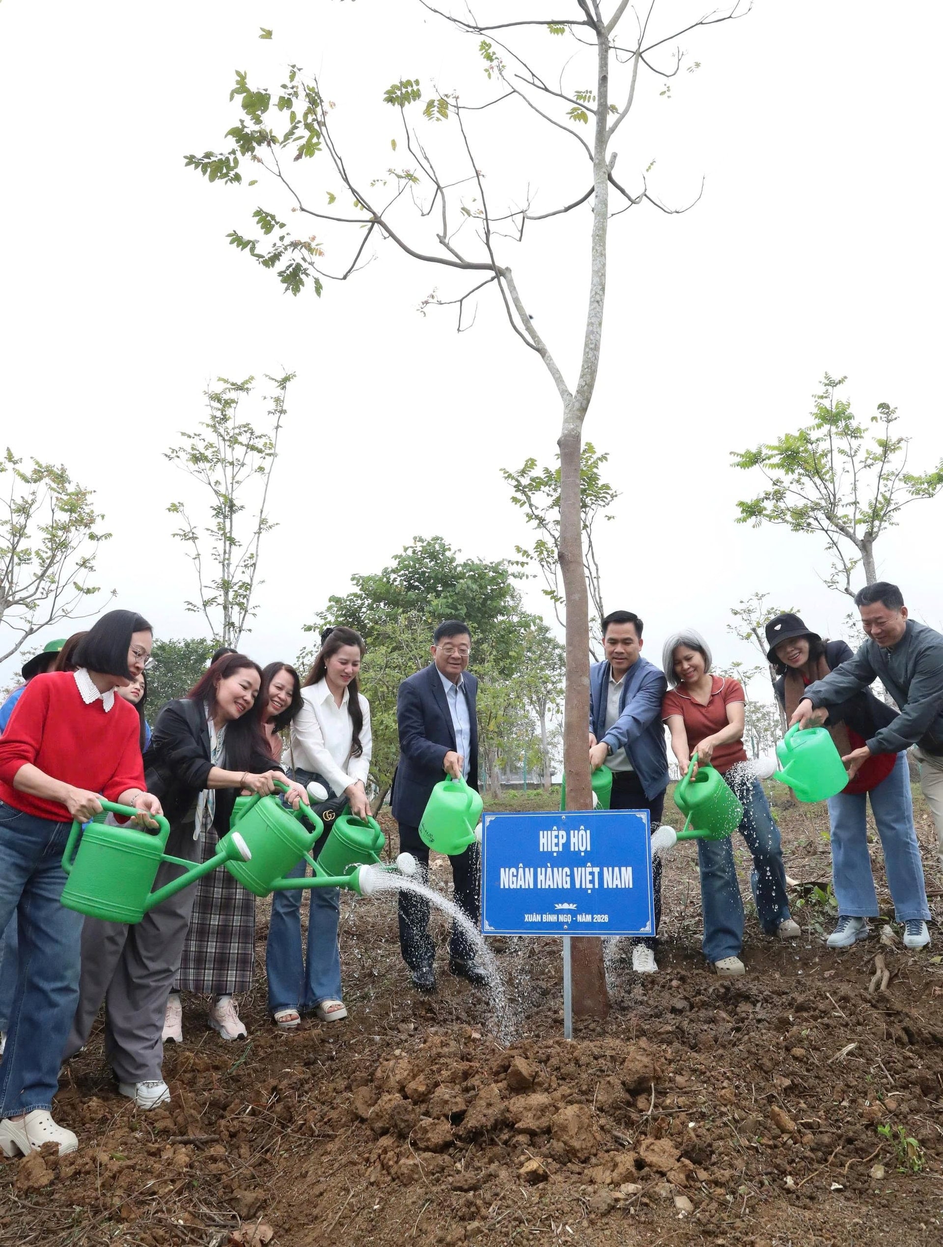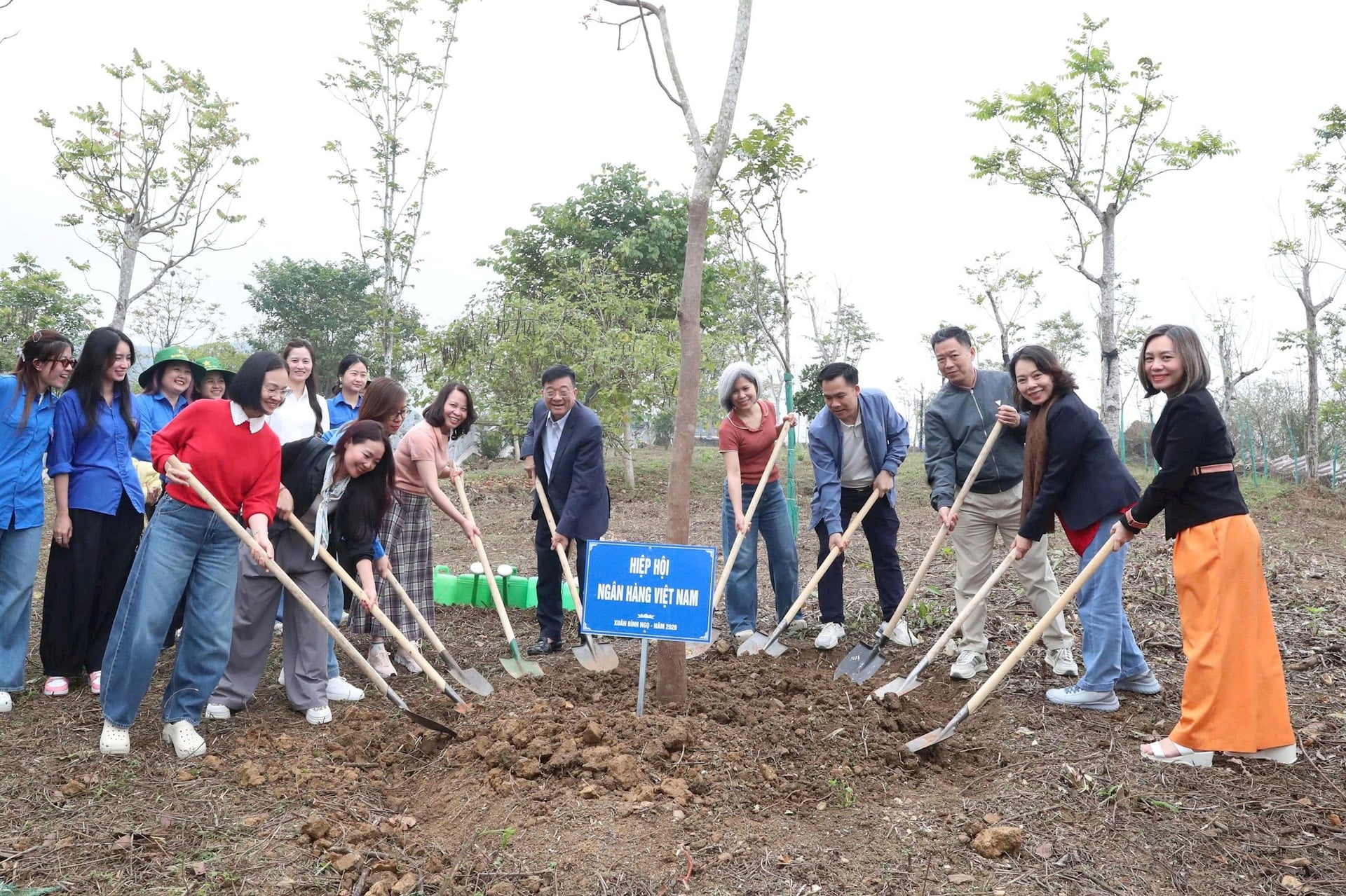 Từ Tân Trào, Đoàn tiếp tục đến dâng hương và trồng cây tại Khu di tích lịch sử Ngành Ngân hàng, xã Minh Thanh, tỉnh Tuyên Quang nhằm hưởng ứng chương trình "Tết trồng cây - Đời đời nhớ ơn Bác Hồ" do Ngân hàng Nhà nước Việt Nam phát động.