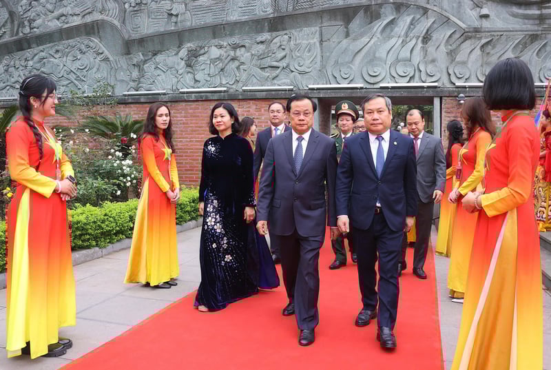 margin: 15px auto;" />Nguyên Ủy viên Bộ Chính trị, nguyên Bí thư Thành ủy Hà Nội Phạm Quang Nghị; Chủ tịch Trung ương Hội Liên hiệp phụ nữ Việt Nam Nguyễn Thị Tuyến; Chủ tịch UBND TP. Hà Nội Vũ Đại Thắng cùng các đại biểu tới tham dự buổi lễ. Ảnh: Linh Phạm