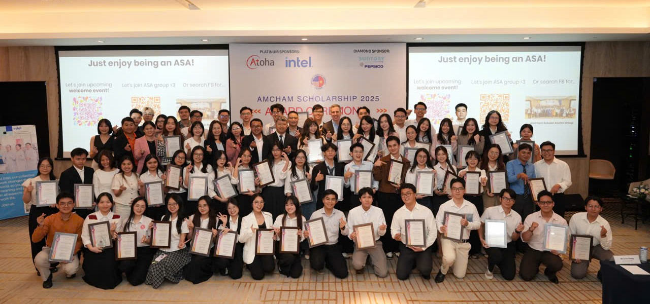 (Banker.vn) Hiệp hội Thương mại Mỹ tại Việt Nam, TP. Hồ Chí Minh (AmCham Việt Nam) vừa trao tặng 60 suất học bổng cho những sinh viên xuất sắc có thành tích cao nhất sau 3 vòng thi tuyển của chương trình Học bổng AmCham 2025.