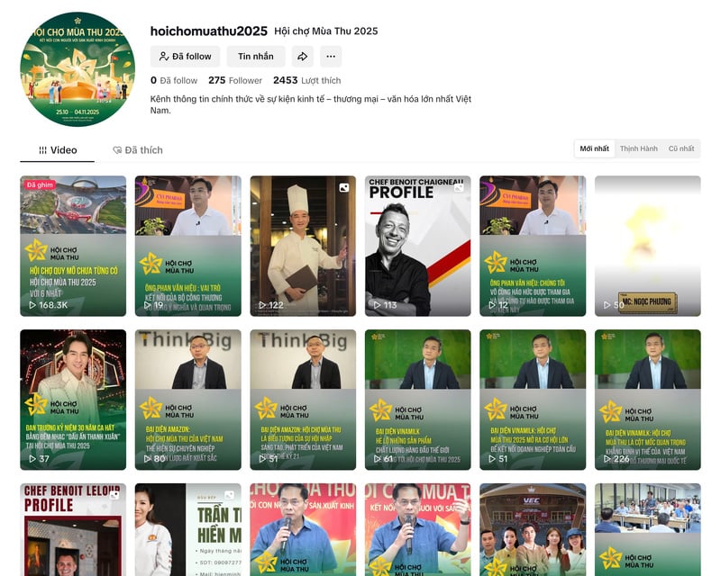 Kênh TikTok Hội chợ Mùa Thu 2025. Ảnh chụp màn hình
