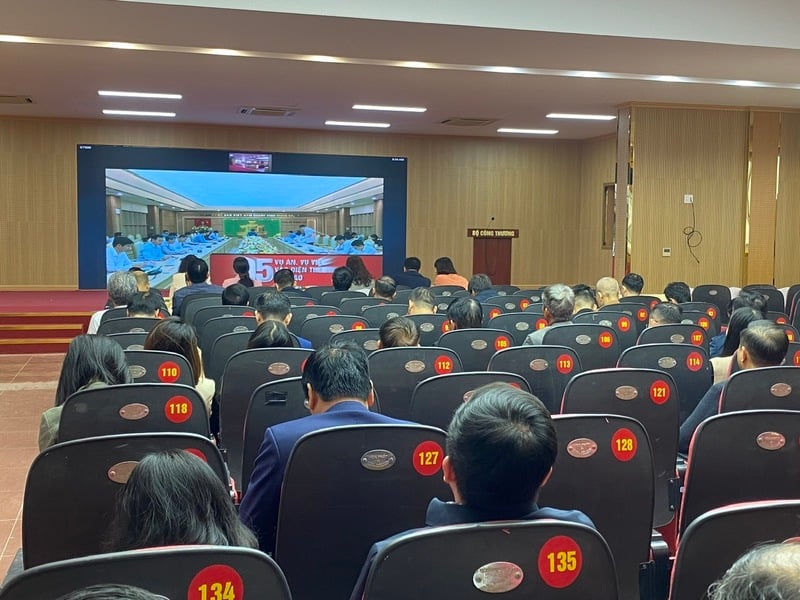 Điểm cầu hội nghị tại Đảng bộ Bộ Công Thương. Ảnh: Quang Dương
