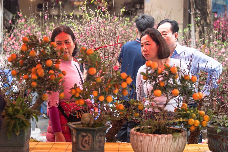 Chợ hoa phố cổ trở thành điểm hẹn văn hóa dịp Tết cổ truyền của dân tộc. Ảnh: Quỳnh Anh