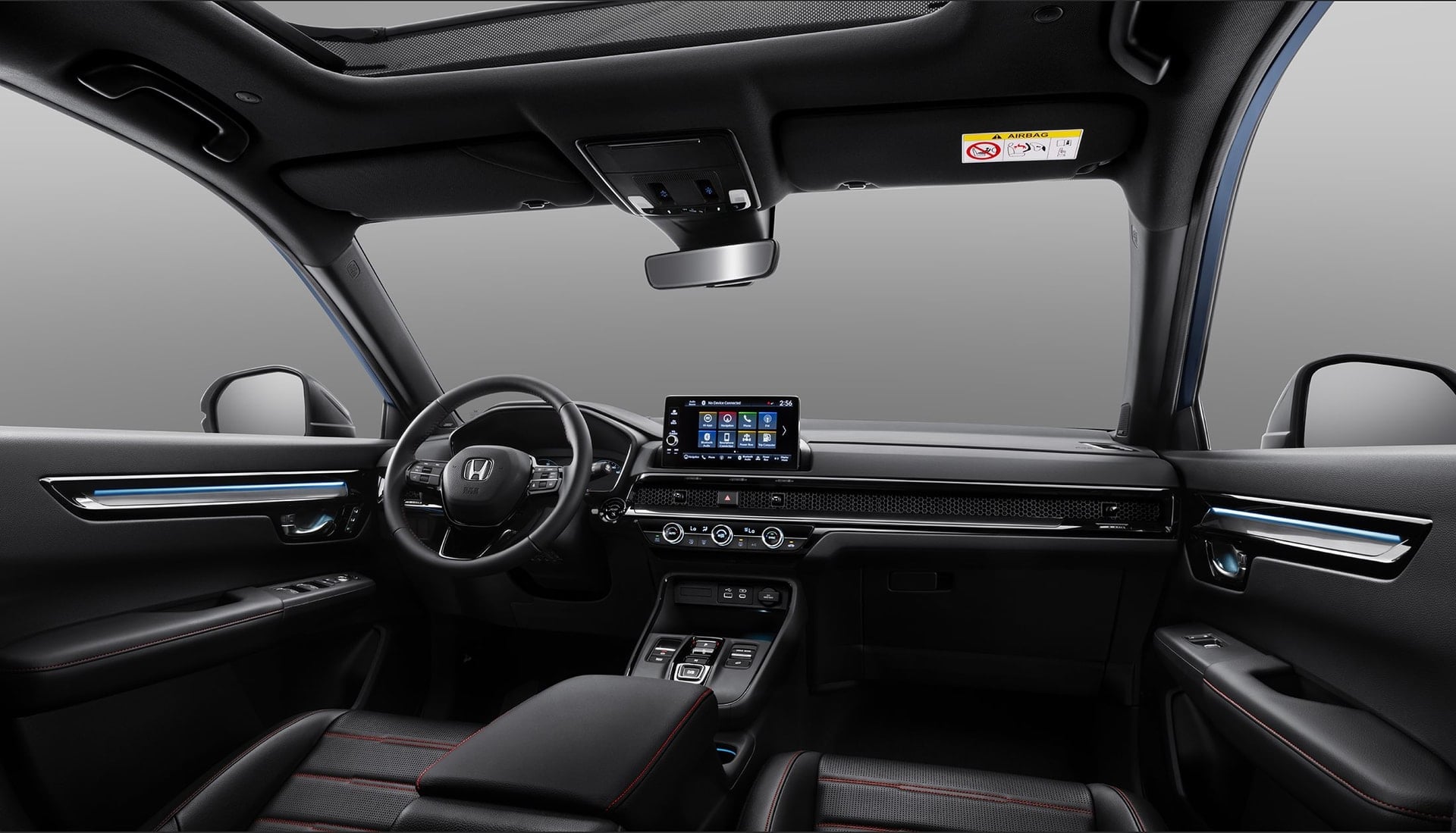 Về tiện nghi, Honda CR-V e:HEV mới có không gian nội thất 5 chỗ rộng rãi tích hợp bảng đồng hồ kỹ thuật số 10,2 inch, màn hình HUD trên bản RS, màn hình giải trí 9 inch kết nối không dây, hệ thống âm thanh 12 loa Bose và sạc không dây. Xe cũng được trang bị nền tảng kết nối viễn thông, cho phép quản lý xe từ xa và tăng tiện ích cho người dùng.