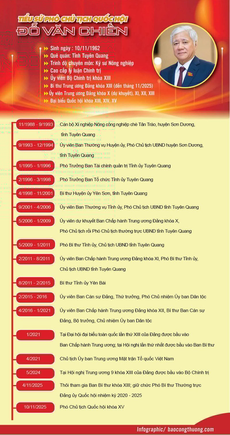 Báo Công Thương xin giới thiệu tóm tắt tiểu sử Phó Chủ tịch Quốc hội Đỗ Văn Chiến: