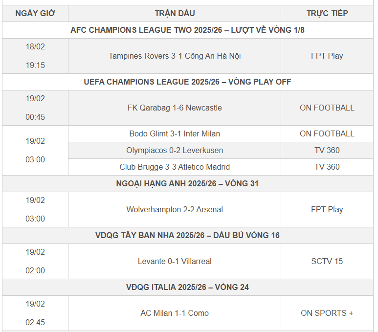 margin: 15px auto;" />Kết quả bóng đá hôm nay 19/2 - mùng 3 Tết