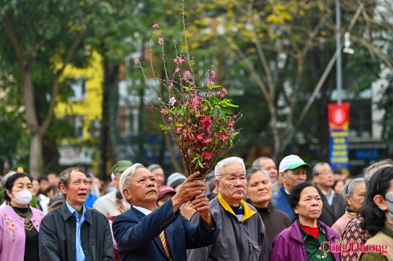Người dân thủ đô mang hoa đào tới dâng lên người anh hùng áo vải Quang Trung - Nguyễn Huệ.