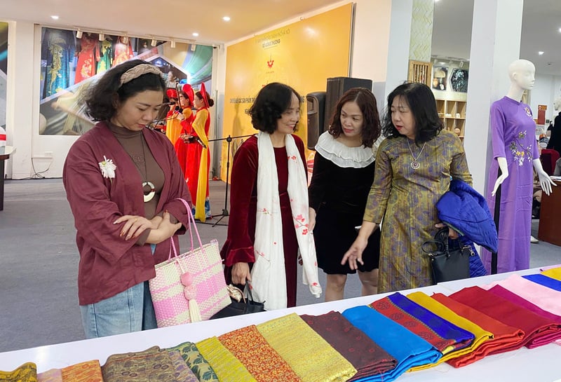 Triển lãm quy tụ gần 500m² trưng bày với hơn 250 mẫu sản phẩm tiêu biểu, trong đó có 100 mẫu thêu ren – lụa, 50 mẫu áo dài, 150 mẫu túi vải. Ảnh: N.H