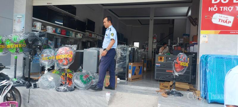 margin: 15px auto;" />Lực lượng quản lý thị trường tỉnh Khánh Hòa kiểm tra tại một cơ sở bán đồ điện trên địa bàn tỉnh. Ảnh: Lê Sơn