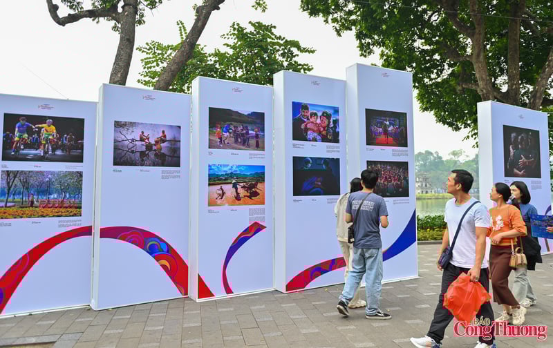 Nhiều bạn trẻ ghi lại những khoảnh khắc bình dị tại triển lãm ảnh Happy Việt Nam.
