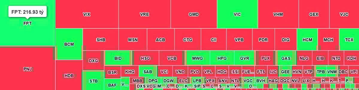 Ở chiều ngược lại, áp lực bán ròng tập trung rõ nét tại một số cổ phiếu vốn hóa lớn. PNJ là mã bị bán mạnh nhất với giá trị lên tới 207 tỷ đồng, phản ánh xu hướng chốt lời tại nhóm bán lẻ sau giai đoạn tăng giá. Ngoài ra, VIX và VRE cũng lần lượt bị bán ròng 154 tỷ đồng và 125 tỷ đồng, khiến áp lực cung tại các mã này gia tăng trong phiên.