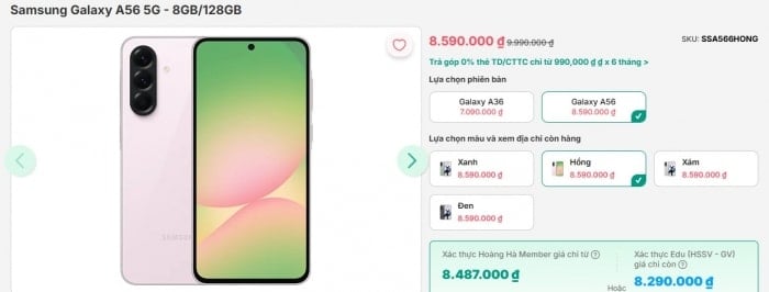 Phân khúc smartphone tầm trung năm 2025, Samsung Galaxy A56 5G được xem là lựa chọn cao cấp nhất của dòng Galaxy A. Mẫu máy này thường được ví như “Galaxy S25 phiên bản dễ tiếp cận”, khi mang xuống nhiều trang bị đắt giá nhưng vẫn giữ mức giá phù hợp với đa số người dùng Việt.