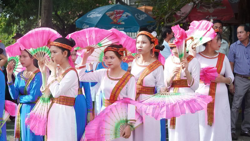 Các thiếu nữ người Chăm (tỉnh Lâm Đồng) trong trang phục truyền thống múa nghi lễ.