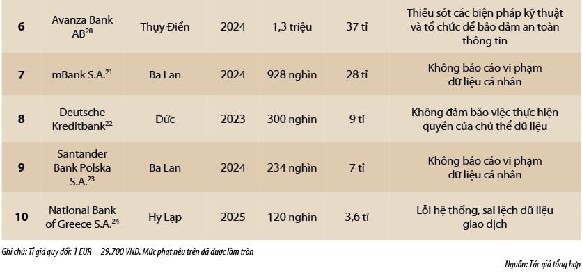 24 Imposition of a fine on a bank for an incident of personal data breach, https://www.edpb.europa.eu/news/national-news/2025/imposition-fine-bank-incident-personal-data-breach_en, truy cập ngày 15/3/2026.