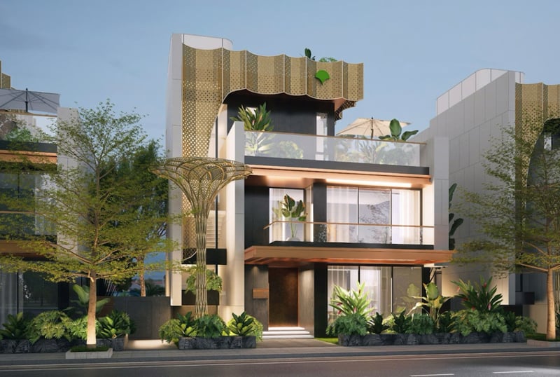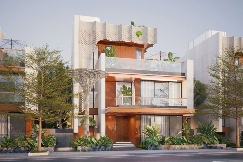 Điểm nhấn độc đáo trước mỗi dinh thự là biểu tượng "Cây Ánh Sáng" cao 3,5m sừng sững như một tác phẩm điêu khắc. Không chỉ mang giá trị mỹ thuật, biểu tượng này còn gửi gắm thông điệp về năng lượng sống, sự kết nối giữa con người và thiên nhiên, tượng trưng cho sự phát triển bền vững và thịnh vượng vươn cao.