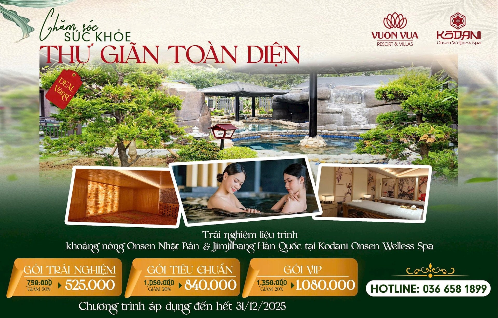 Kodani Onsen Wellness Spa đang có chương trình uu đãi lên đến 30%, đây là cơ hội lý tưởng để tái tạo năng lượng và tận hưởng hành trình chăm sóc thân – tâm – trí một cách tinh tế, đẳng cấp.
