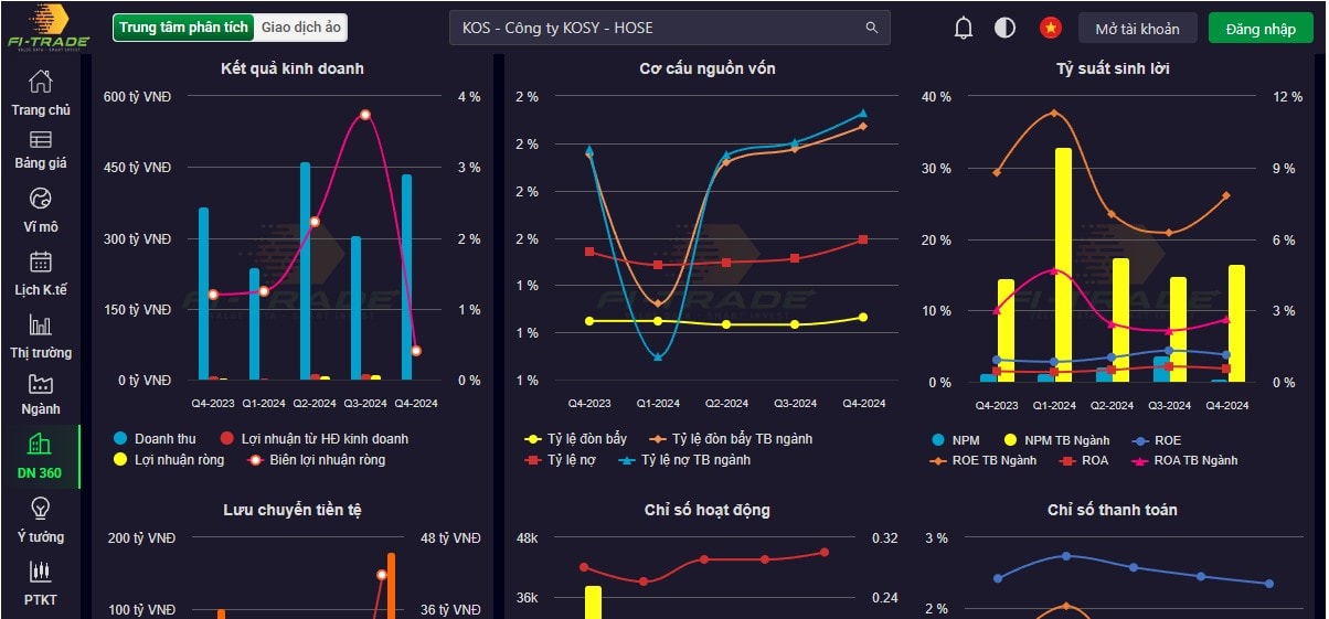 Cổ phiếu KOS được niêm yết trên Sở Giao dịch Chứng khoán Thành phố Hồ Chí Minh (HOSE) từ tháng 07/2019. Hiện khối lượng cổ phiếu KOS đang niêm yết và lưu hành là hơn 216 triệu đơn vị, tương ứng vốn hóa đạt trên 8,5 nghìn tỷ đồng. Trong đó, ông Nguyễn Việt Cường - Chủ tịch HĐQT nắm giữ 35,4% vốn điều lệ (tương ứng 76,64 triệu cổ phiếu); bà Nguyễn Thị Hằng - Phó Chủ tịch HĐQT nắm giữ 6,42% vốn điều lệ (tương ứng gần 13,9 triệu cổ phiếu);…