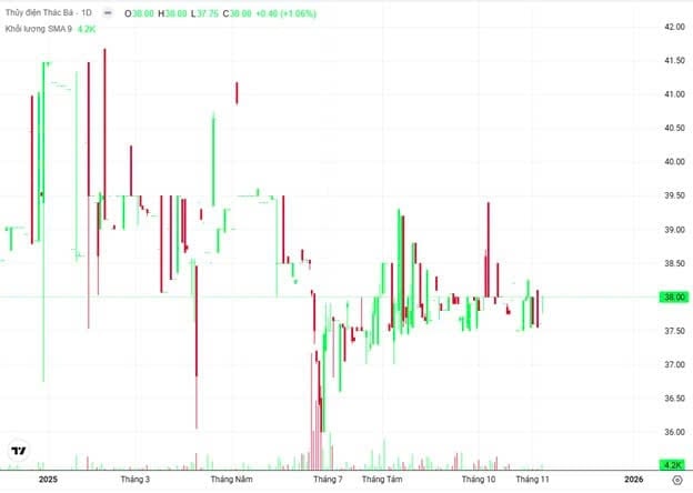Tại phiên giao dịch chiều ngày 12/11, cổ phiếu TBC đứng tại mức giá 38.000 đồng, tăng nhẹ 053%. Tuy nhiên như đã nói ở trên, thanh khoản phiên này cũng chỉ ở mức 1.000 đơn vị. So với giai đoạn tạo đáy hồi cuối tháng 6, thị giá TBC đã có mức tăng nhẹ khoảng 5,5%. Tuy nhiên nếu so với đầu năm, thị giá của TBC đã giảm khoảng 9%.