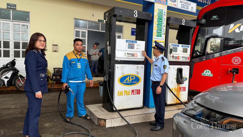Lực lượng Quản lý thị trường tỉnh Lâm Đồng kiểm tra cây xăng trên địa bàn Đà Lạt. Ảnh: Lê Sơn