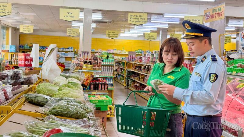Lực lượng Quản lý thị trường tỉnh Lâm Đồng kiểm tra hàng hóa tại cửa hàng Bách hóa xanh trên địa bàn Đà Lạt. Ảnh: Lê Sơn