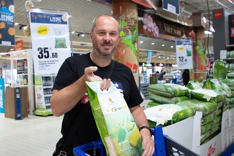 Gạo Việt Nam, quả vải Việt Nam được bán trong các hệ thống siêu thị của Pháp, được người tiêu dùng Pháp ưa chuộng. Ảnh: Anh Sơn