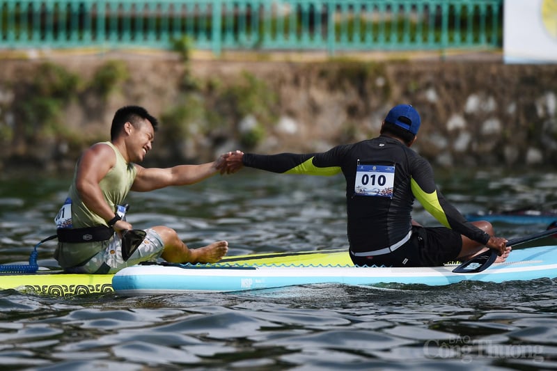 Các vận động viên lần đầu tiên được trải ngiệm đua SUP trên Hồ Tây.