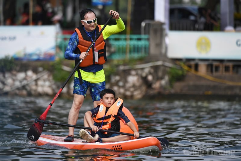 Lần đầu chèo SUP 'đổ bộ' Hồ Tây, khuấy động Giải Thuyền rồng 2025
