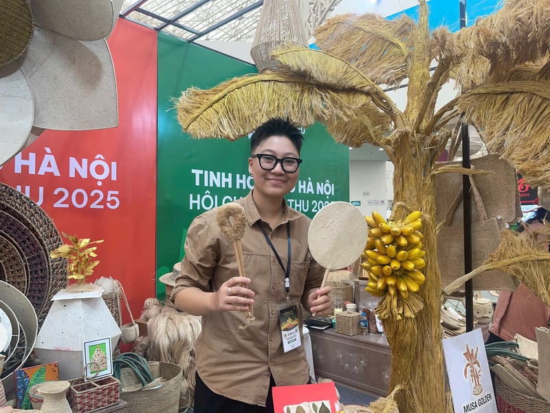 Gian hàng của Công ty Cổ phần Musa Golden Lào Cai nổi bật với những sản phẩm độc đáo làm từ sợi chuối tự nhiên.