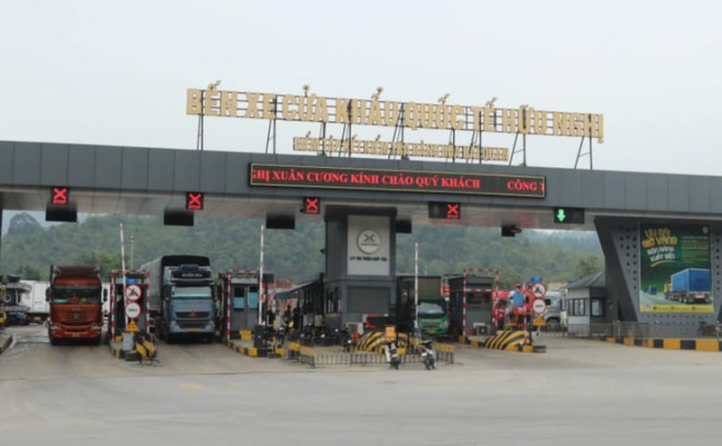 Phương tiện chở hàng xuất nhập khẩu lưu thông qua bến bãi khu vực cửa khẩu Quốc tế Hữu Nghị, tỉnh Lạng Sơn.