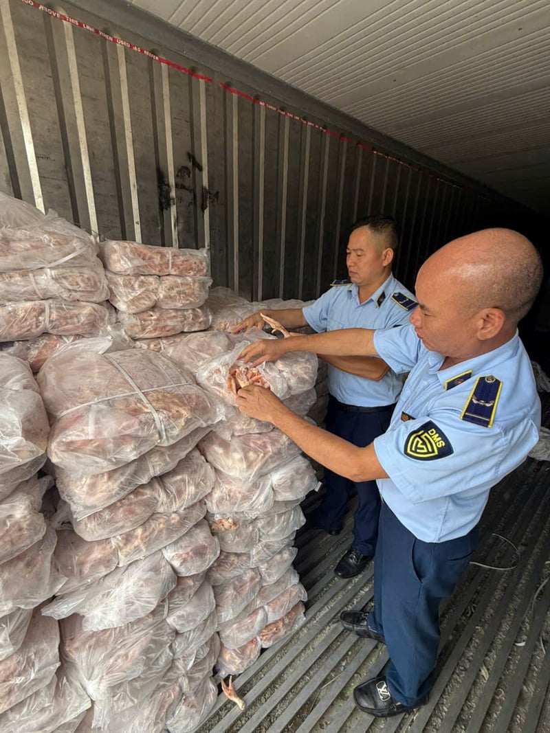 margin: 15px auto;" />Lực lượng Quản lý thị trường Lào Cai phát hiện, xử lý lô chân gà động lạnh không rõ nguồn gốc. Ảnh: QLTT
