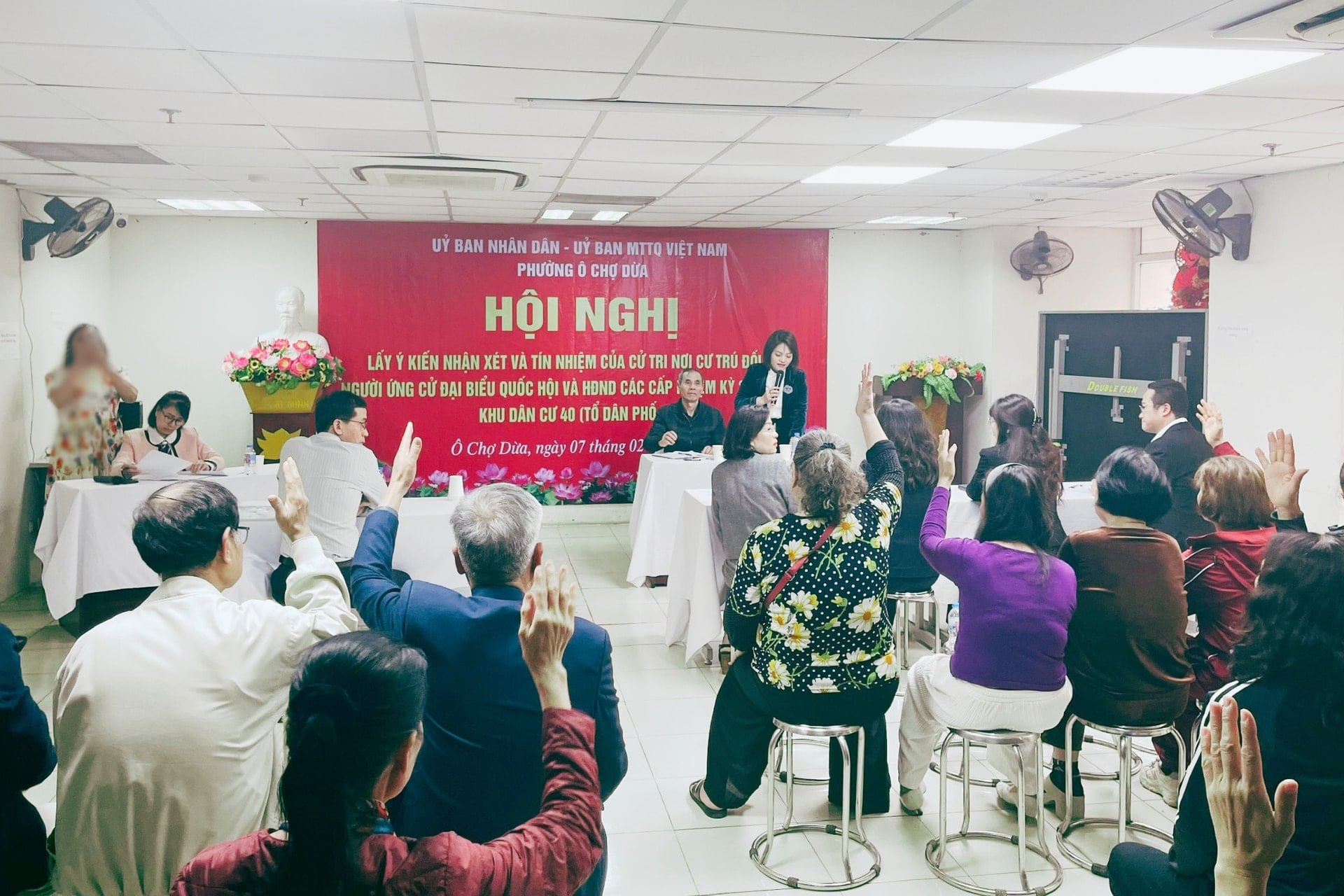 (Banker.vn) Chiều 7/2, tại Hà Nội, Ủy ban MTTQ phường Ô Chợ Dừa phối hợp với UBND phường Ô Chợ Dừa tổ chức Hội nghị lấy ý kiến nhận xét và tín nhiệm của cử tri nơi cư trú đối với người ứng cử đại biểu Quốc hội khóa XVI và HĐND các cấp nhiệm kỳ 2026 – 2031 tại khu dân cư 40, tổ dân phố 65.