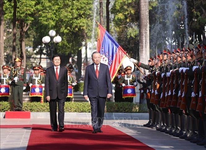 (Banker.vn) Theo đặc phái viên TTXVN, sáng 5/2, Lễ đón chính thức Tổng Bí thư Tô Lâm cùng đoàn đại biểu cấp cao Việt Nam thăm cấp Nhà nước Cộng hòa Dân chủ Nhân dân Lào đã diễn ra trọng thể tại Phủ Chủ tịch, thủ đô Viêng Chăn (Lào).