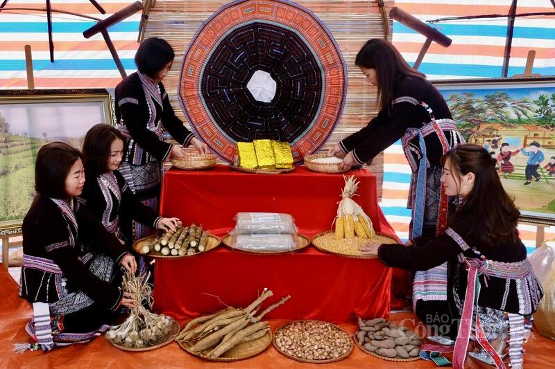 Không gian trưng bày các sản vật và sản phẩm OCOP xã Bản Bo thu hút du khách.