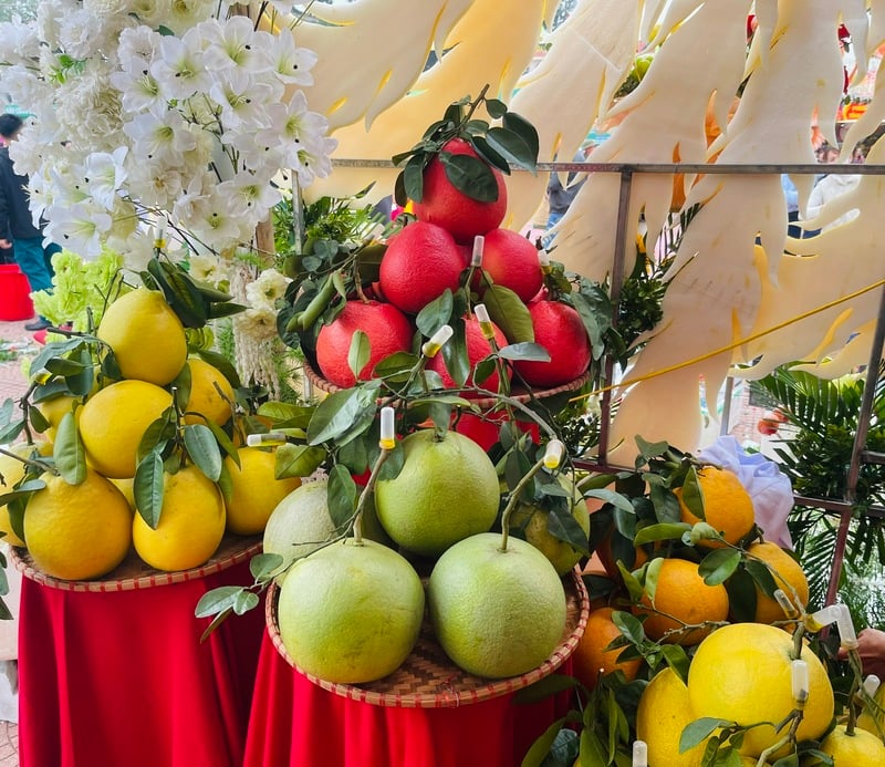 Các sản phẩm bưởi tiến Vua được trưng bày tại hội chợ. Ảnh: Nguyễn Hương