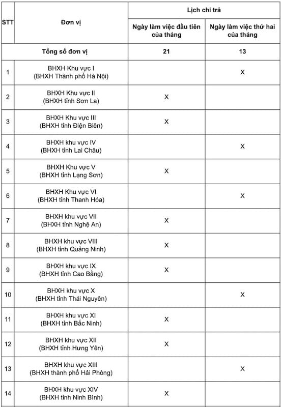 Bảo hiểm xã hội Việt Nam cũng lưu ý, trong trường hợp ngày chi trả trùng vào ngày thứ bảy, chủ nhật hoặc các ngày nghỉ lễ, Tết, việc chi trả sẽ được thực hiện vào ngày làm việc tiếp theo để đảm bảo quyền lợi cho người hưởng.