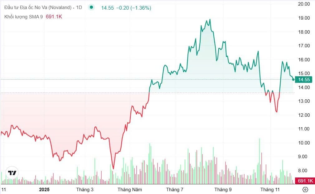 Trên thị trường chứng khoán, cổ phiếu NVL đang cho thấy tín hiệu hồi phục sau khi rơi xuống vùng 12.000 đồng một cổ phiếu hồi đầu tháng mười một. Chốt phiên ngày 1/12, thị giá NVL dao động quanh 14.750 đồng một cổ phiếu, tăng đáng kể so với đáy gần nhất nhưng vẫn còn cách xa vùng 19.000 đồng ghi nhận hồi tháng tám.