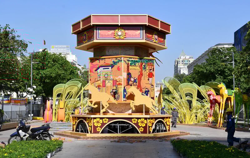 Với chủ đề “Xuân hội tụ - vững bước vươn mình”, đường hoa Nguyễn Huệ tết Bính Ngọ 2026 đang được hàng trăm công nhân gấp rút thi công, hoàn thành các hạng mục chuẩn bị phục vụ du khách và người dân TP. Hồ Chí Minh du xuân, thưởng ngoạn.