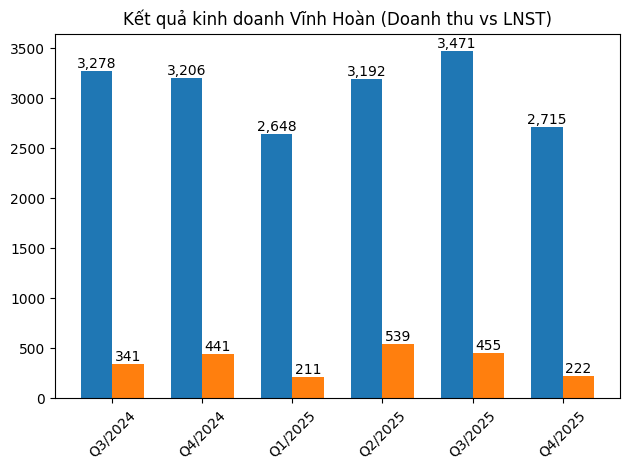 Lũy kế năm 2025, Vĩnh Hoàn đạt khoảng 12.027 tỷ đồng doanh thu, giảm nhẹ hơn 4% so với năm trước; lợi nhuận ròng tăng khoảng 9% lên 1.347 tỷ đồng. Kết quả này cao hơn khoảng 3% so với kịch bản lợi nhuận cao nhất mà doanh nghiệp đề ra.