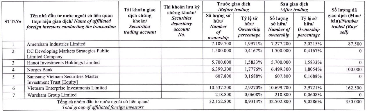 Đến giữa tháng 10/2025, quỹ thành viên Norges Bank tiếp tục mua thêm 450.000 cổ phiếu, nâng tổng khối lượng mua ròng của cả nhóm lên khoảng 30,2 triệu cổ phiếu trong vài tháng.