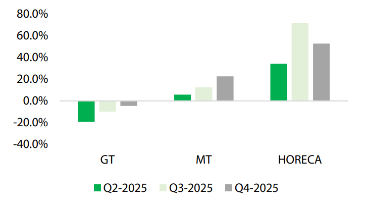 Song song đó, chiến lược đẩy mạnh kênh bán trực tiếp tới người tiêu dùng và tận dụng hệ sinh thái bán lẻ được xem là yếu tố có thể giúp cải thiện biên lợi nhuận, thay vì phụ thuộc vào tăng trưởng sản lượng đơn thuần.