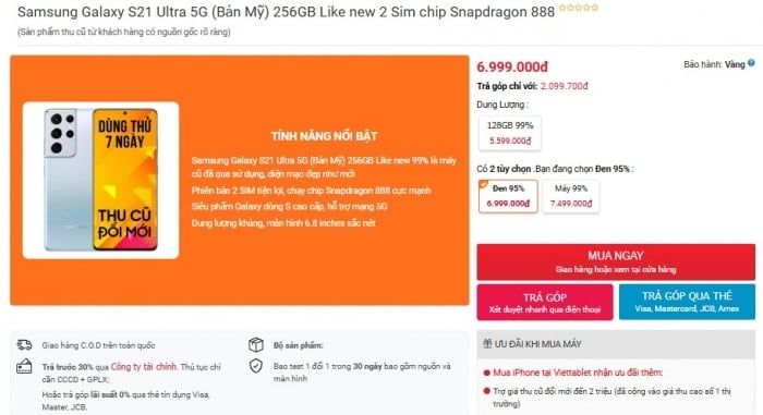 Ra mắt từ 2021, S21 Ultra được xem là mẫu máy mở đường cho xu hướng "thiên lý nhãn" của Samsung, thứ mà các đời Ultra sau này (bao gồm cả Galaxy S25 Ultra) tiếp tục phát triển. Quan trọng hơn, ở thời điểm đầu 2026, Galaxy S21 Ultra đang rớt giá xuống mức dễ mua đến bất ngờ bản 128GB ngoại hình cũ đẹp chỉ từ khoảng 6,9 triệu đồng.