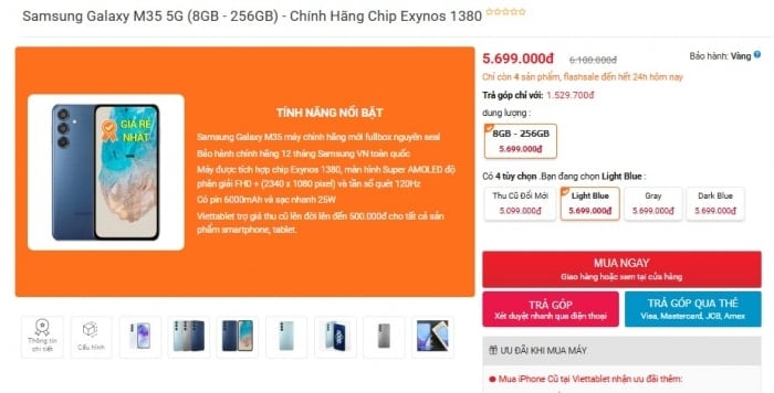 Với mức giá khoảng 5–6 triệu đồng, Galaxy M35 5G mang lại khá nhiều ưu điểm như màn hình AMOLED 120Hz, pin 6.000mAh và hiệu năng ổn định.