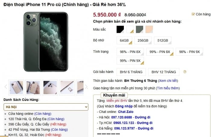 Khảo sát thị trường iPhone cũ cuối tháng 1/2026 cho thấy iPhone 11 Pro cũ đang được rao bán từ khoảng 5,9 triệu đồng, tùy tình trạng máy, ngoại hình và dung lượng (phổ biến vẫn là 64GB/256GB).