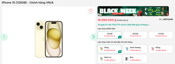 Cuối tháng 11, giá iPhone 15 ghi nhận mức giảm mạnh nhất từ trước đến nay, cụ thể: