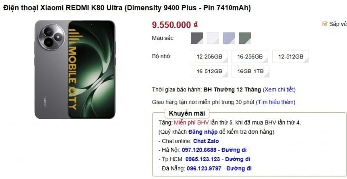 margin: 15px auto;" />Ở thời điểm đầu tháng 12, Redmi K80 Ultra được bán với mức giá chỉ 9,55 triệu đồng cho bản 12GB – 256GB. Những phiên bản dung lượng cao hơn cũng chỉ dao động từ 10,8 đến hơn 11 triệu đồng. Tại nhiều hệ thống chuyên hàng xách tay, mẫu máy này thậm chí rơi vào tình trạng cháy hàng do nhu cầu tăng nhanh.