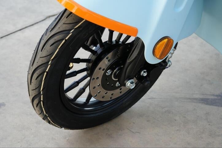 Chiều cao yên khoảng 760 mm phù hợp thể trạng học sinh THCS và THPT, cho tư thế ngồi thoải mái nhưng vẫn chống chân dễ dàng. Bộ vành 10 inch kết hợp lốp không săm mang lại cảm giác chắc chắn khi di chuyển trên đường ướt hay gồ ghề nhẹ.